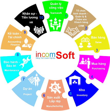 Giải pháp incomSoft ERP gồm 10 phân hệ bao quát toàn bộ hoạt động doanh nghiệp: